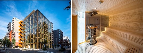 - ビルは2021年に完成し、オフィスサウナ「LUOVA SAUNA」を備えている