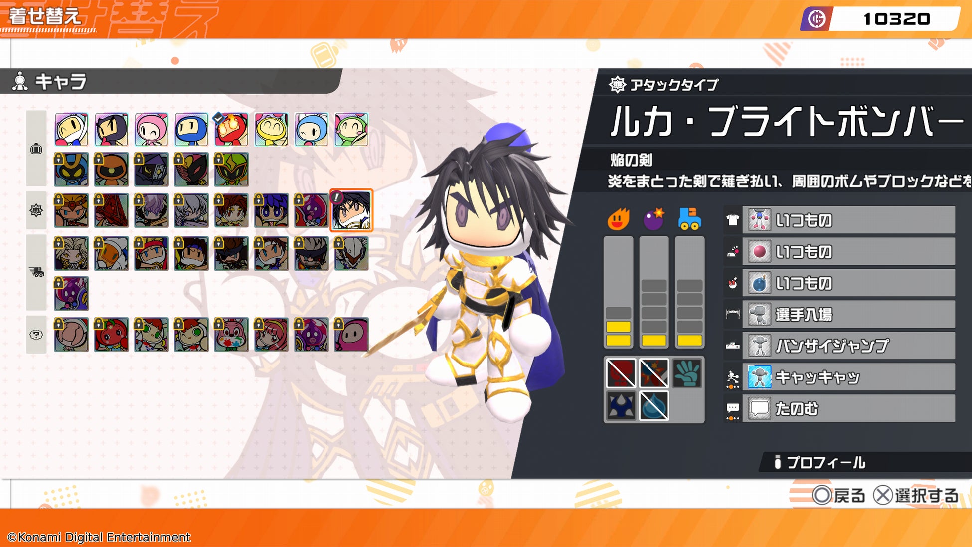 ルカ・ブライトボンバーは「幻想水滸伝Ⅱ」からの登場キャラクターで、炎をまとった剣で攻撃し、ボムやブロックを破壊できます。