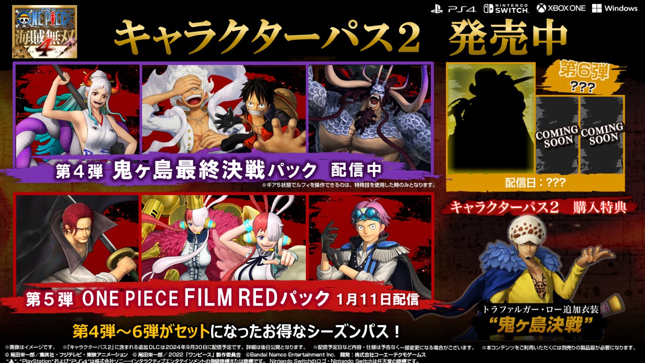 1月11日(木)に、ゲーム「ONE PIECE 海賊無双4」の追加DLCが配信されることが決定しました!キャラクターパック第5弾「ONE PIECE FILM REDパック」では、映画「ONE PIECE FILM RED」からウタ、シャンクス、コビーが初めてプレイアブルキャラクターとして参戦します。