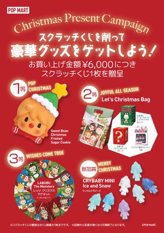 POP MARTでは、クリスマスキャンペーンも開催されており、スクラッチくじで豪華なグッズを手に入れることができます。