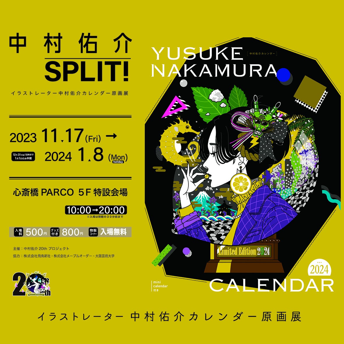 心斎橋パルコでは、中村佑介20thプロジェクトの一環として、初のカレンダー原画展「中村佑介 SPLIT!」が開催されています。