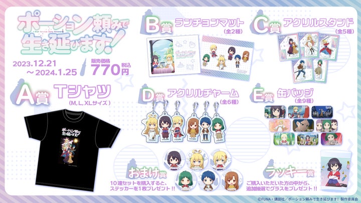 • 2023年12月21日から2024年1月25日まで、アニメ「ポーション頼みで生き延びます!」のオンラインくじが販売される