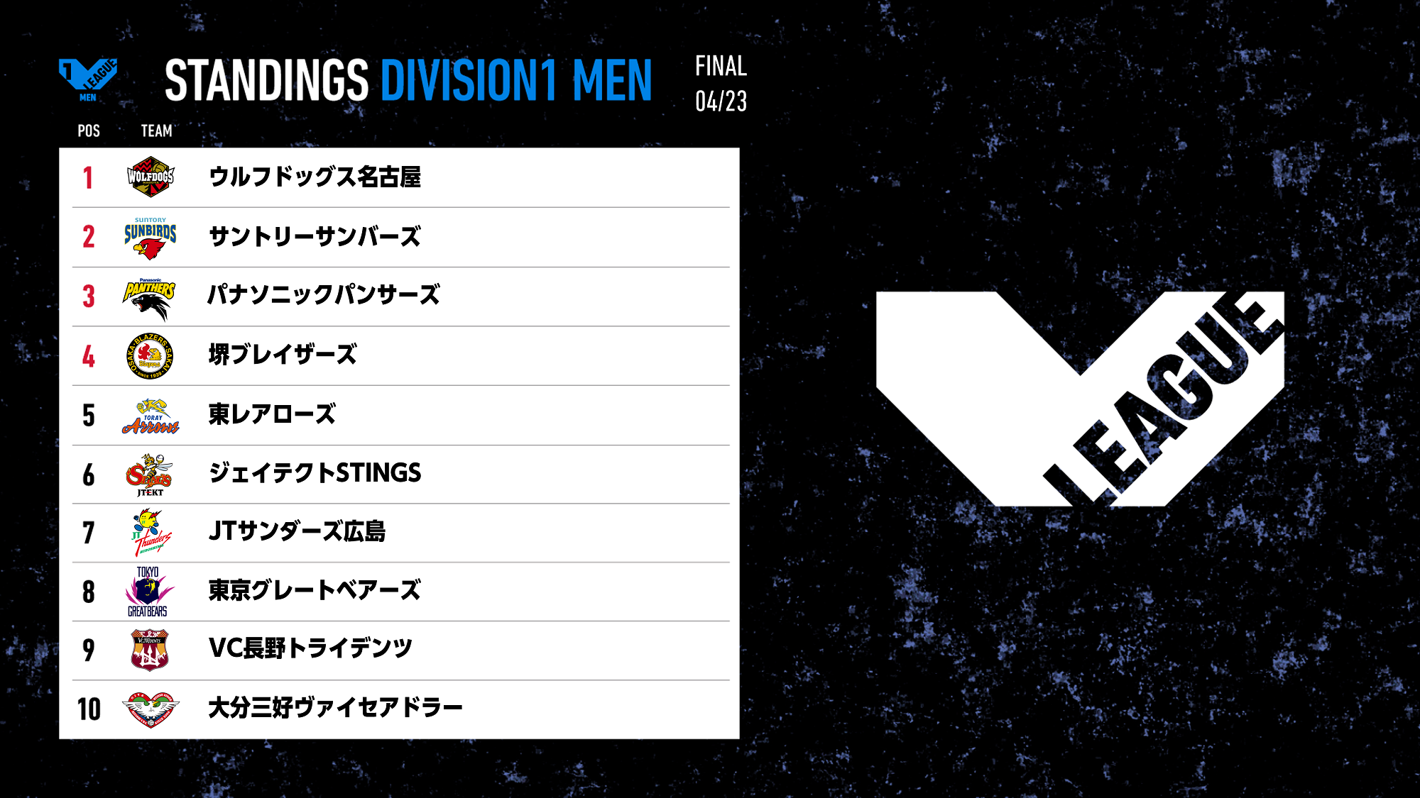 2022-23 V.LEAGUE DIVISION1 MEN 最終順位