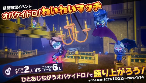 この期間限定イベントでは、オバケチーム2人とニンゲンチーム6人で遊べる「第3回 オバケイドロ!わいわいマッチ」が楽しめます。