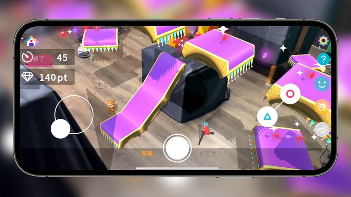 - ゲームは現実世界とARのブロックで構成されたフィールドでクリスタルを集めるアクションゲーム