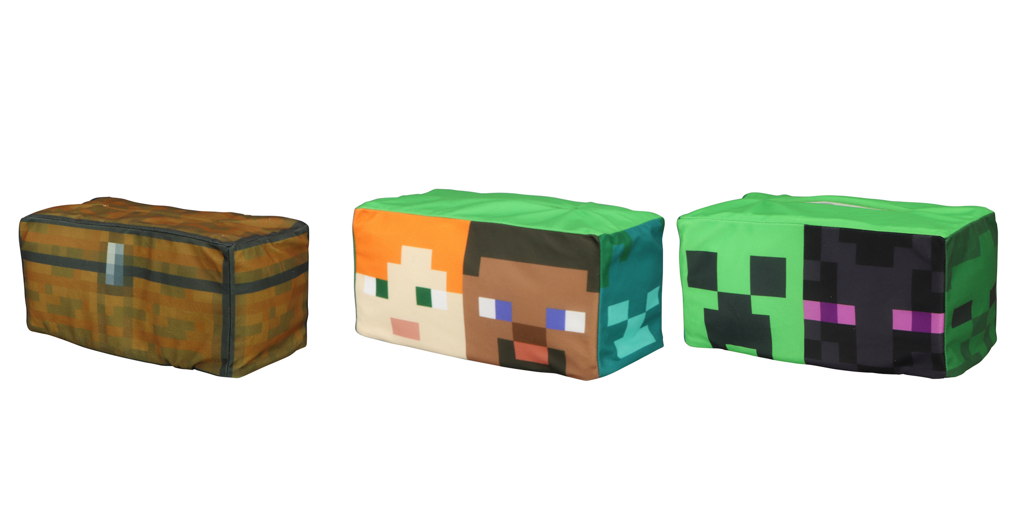 - マインクラフト、ポピーを持ったアイアンゴーレムBIGぬいぐるみ、村人デフォルメぬいぐるみ、ティッシュボックスカバー ~ラージチェスト/FACE~、ラバー道具ペン