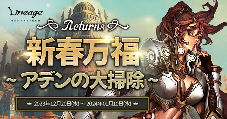 エヌ・シー・ジャパン株式会社は、PC向けオンラインゲーム『リネージュ』の新春イベント「新春万福~アデンの大掃除~ リターンズ」を2023年12月20日から2024年1月10日まで開催します。