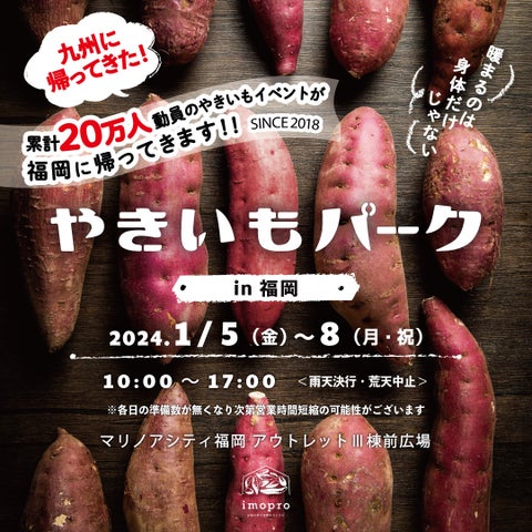- 「やきいもパーク」は、imoproが厳選した美味しい品種のやきいもを提供するイベント