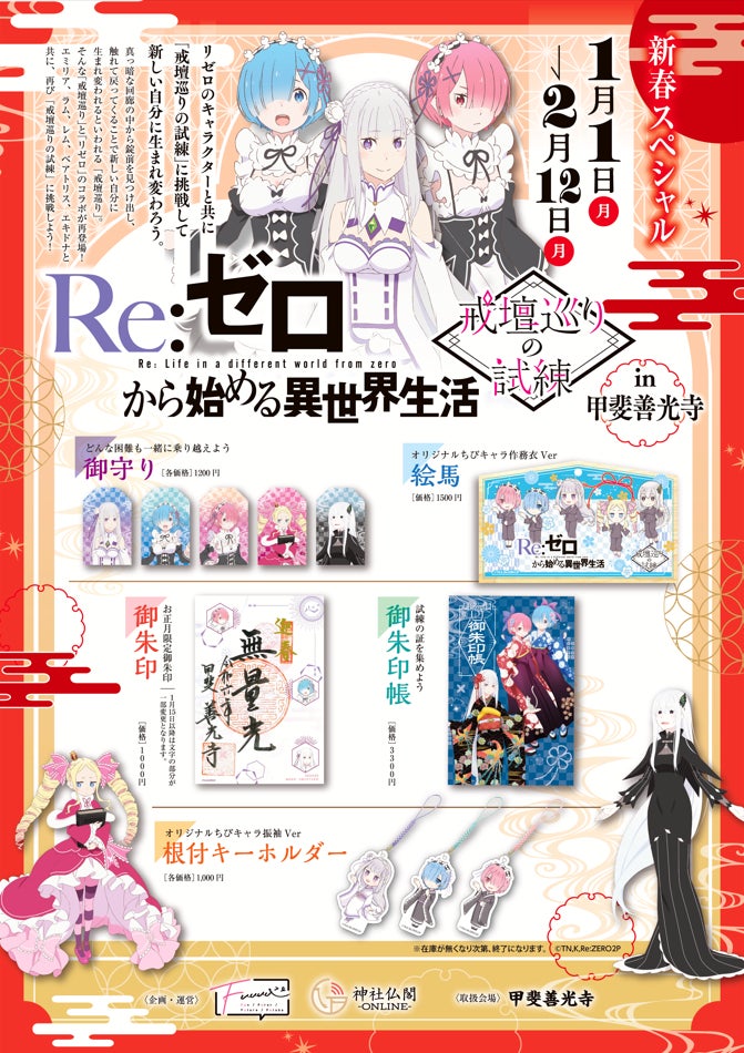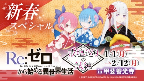 2024年1月1日から2月12日まで、甲斐善光寺で「Re:ゼロから始める異世界生活2」と伝統文化のコラボ企画が開催されます。