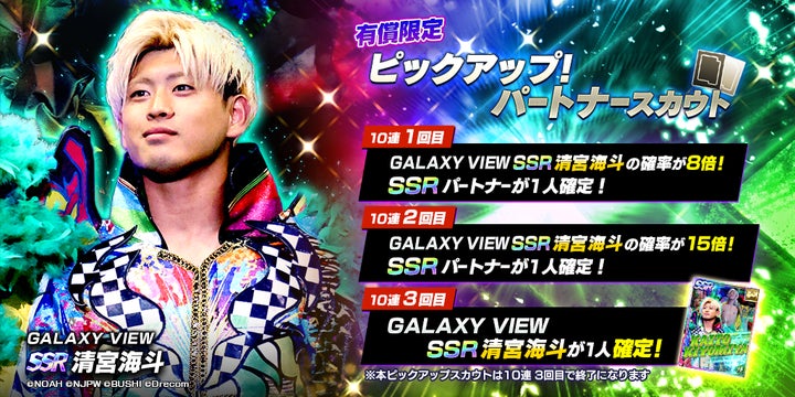 NOAHから、SSRの清宮海斗が登場します!NOAH限定ピックアップパートナースカウトを開催しています。