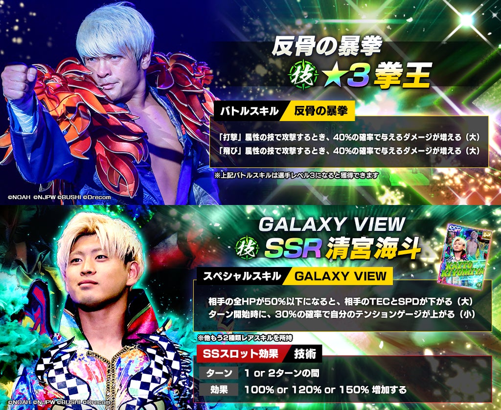 新日SSでは、2023年12月20日(水)のメンテナンス終了後から、NOAHよりSSRパートナーとして、SSRの「[GALAXY VIEW]清宮海斗」が登場します。