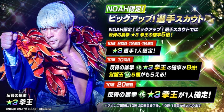 NOAHから、★3の拳王が登場します!NOAH限定ピックアップ選手スカウトを開催しています。