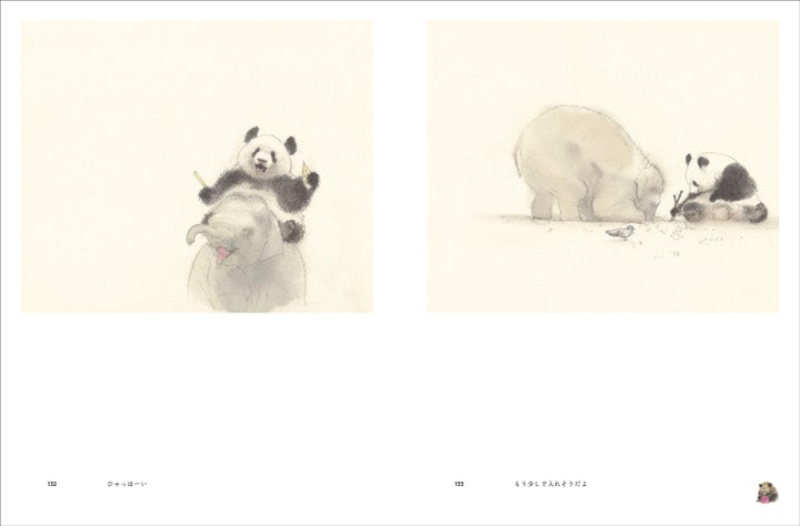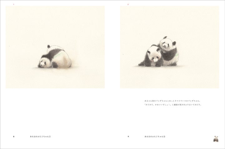 約130点の作品が収録されており、パンダの姿や仕草、動きに注目して描かれています。