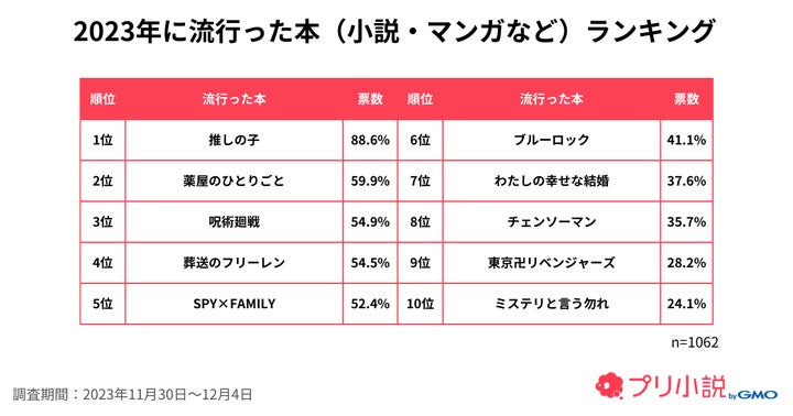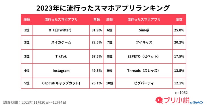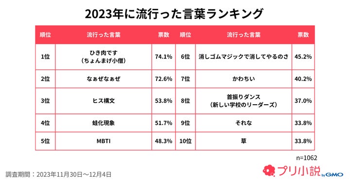 調査対象は「プリ小説 byGMO」ユーザーの女子中高生1,062名で、調査期間は11月30日から12月4日まででした。