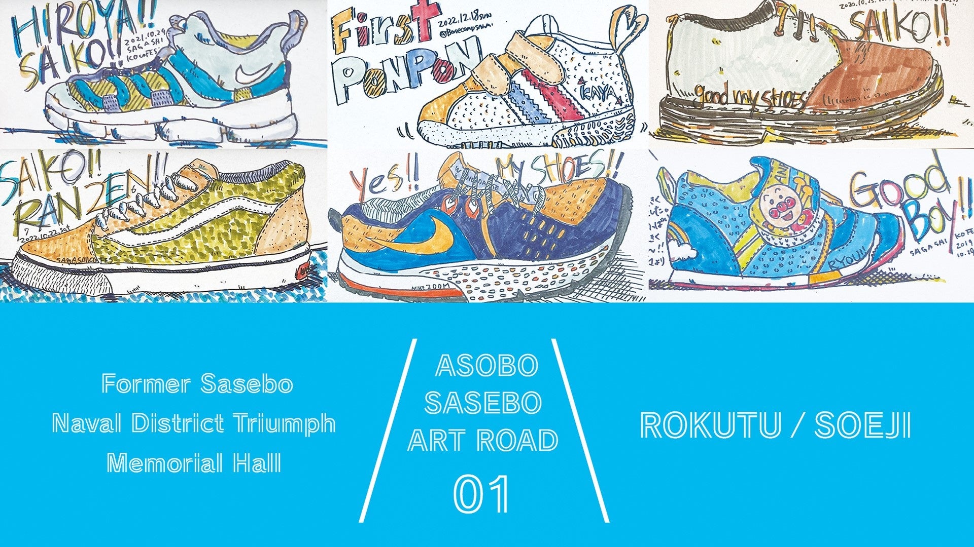 旧佐世保鎮守府凱旋記念館をスタート地点に、靴のイラストや似顔絵アートオブジェなどが展示されます。
