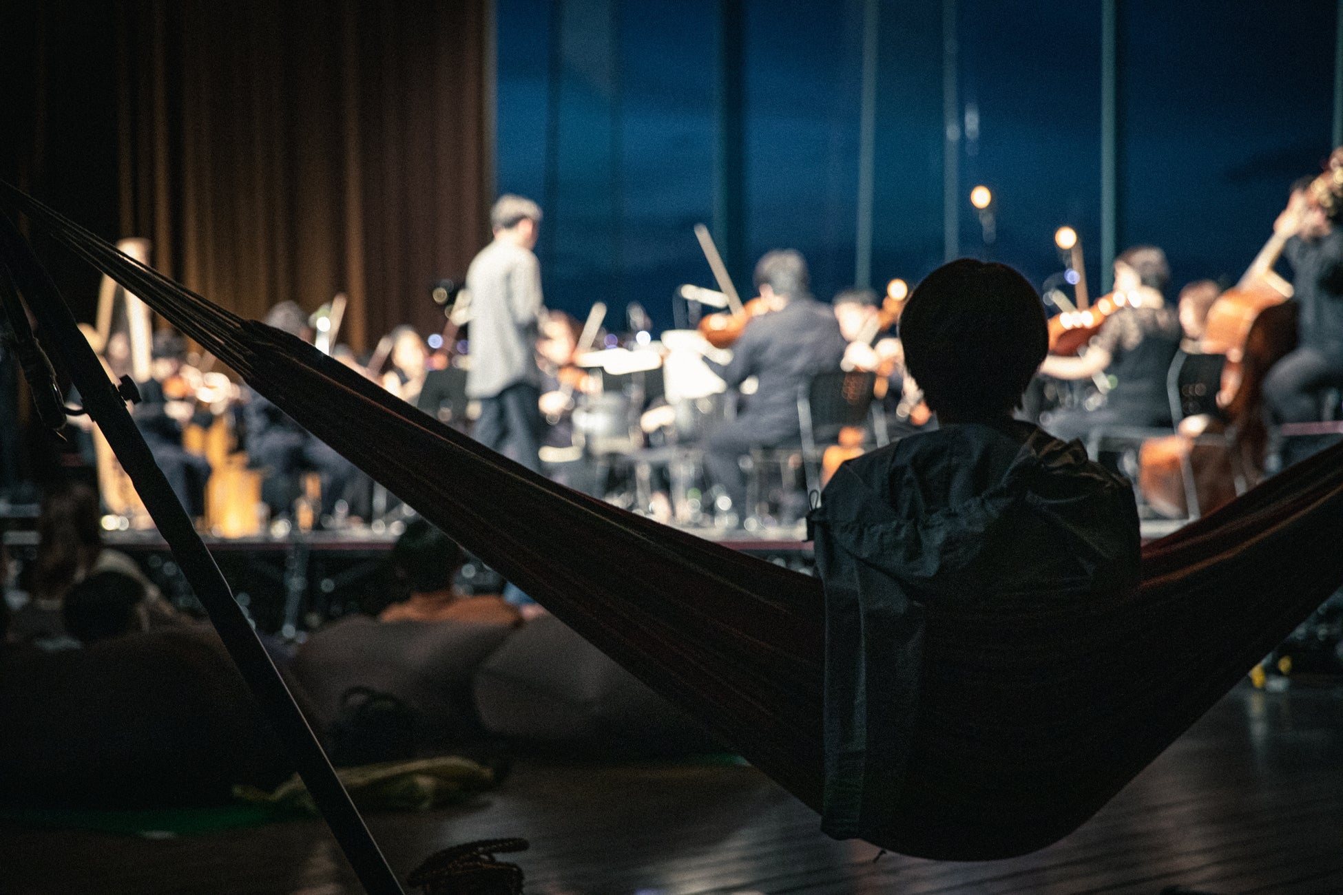 - リクライニングチェアやハンモックでくつろぎながらオーケストラの演奏を楽しめる