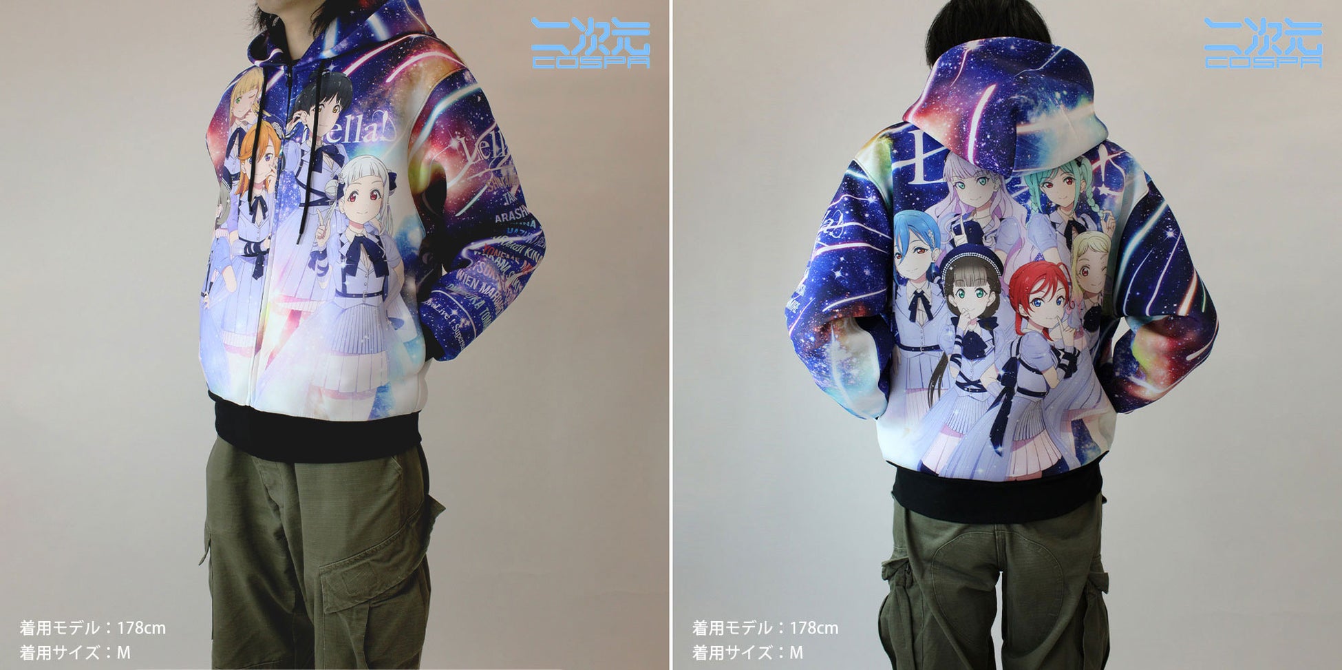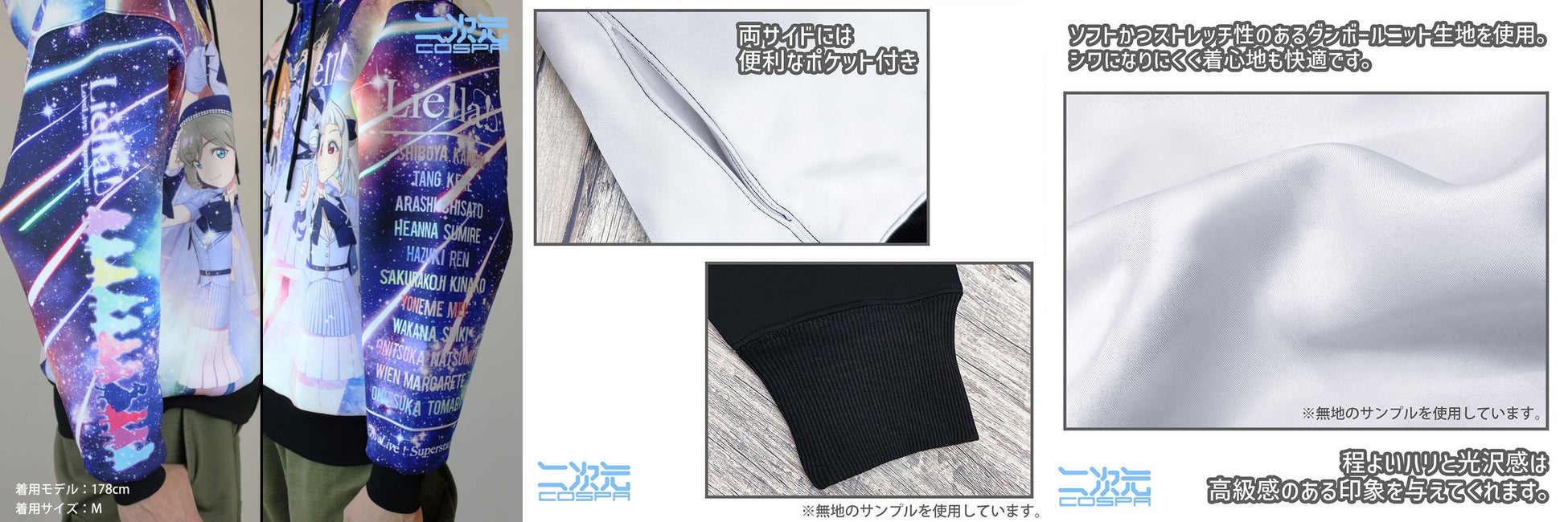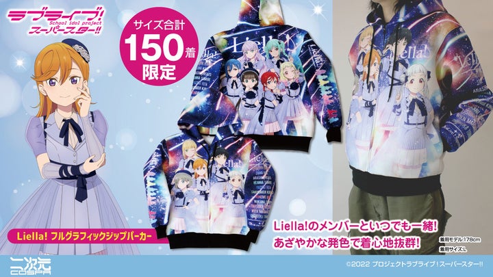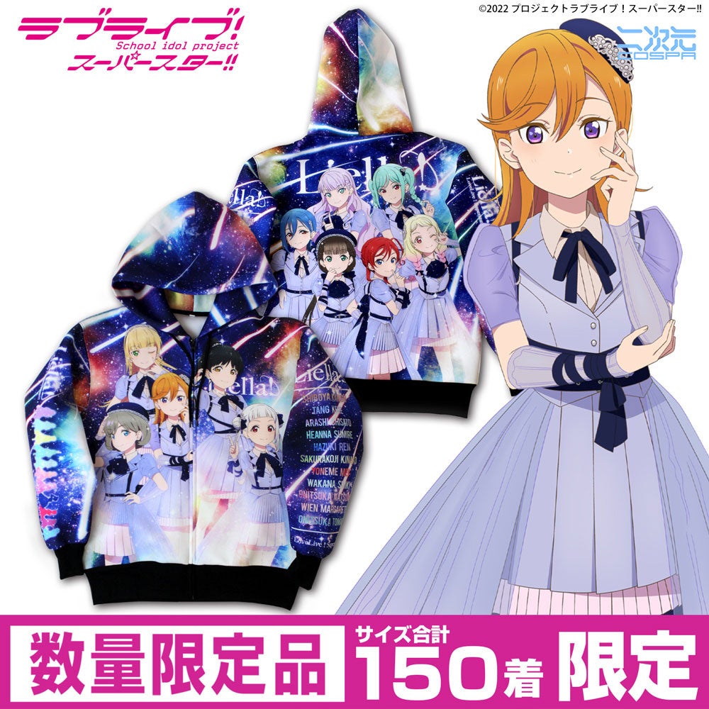 「Liella! フルグラフィックジップパーカー」は、『ラブライブ!スーパースター!!』のLiella!メンバーと一緒にいる気分を楽しめるアイテムです。