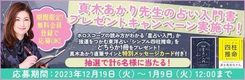 キャンペーンでは、抽選で6名に真木あかりさんの直筆サイン入りの占い入門書がプレゼントされます。