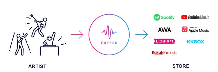 - narasuは音楽配信ストアへの楽曲登録を代行するサービス