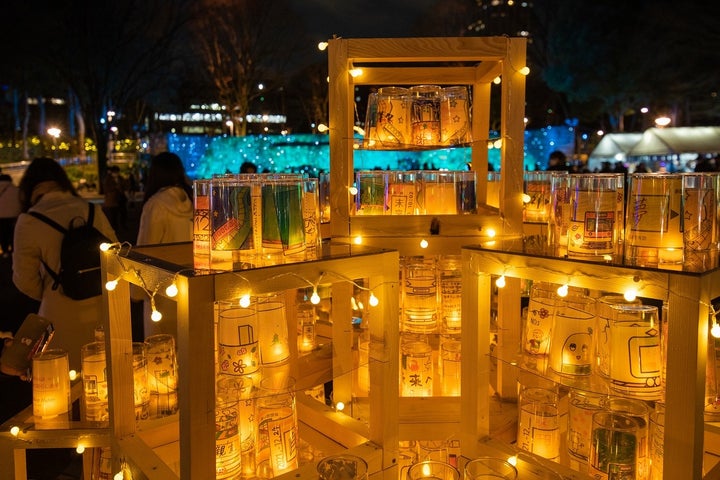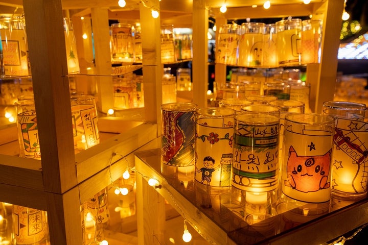 キャンドルナイトでは、自分で描いた塗り絵をキャンドルホルダーに入れてオリジナルのキャンドルを作り、会場に設置することができます。