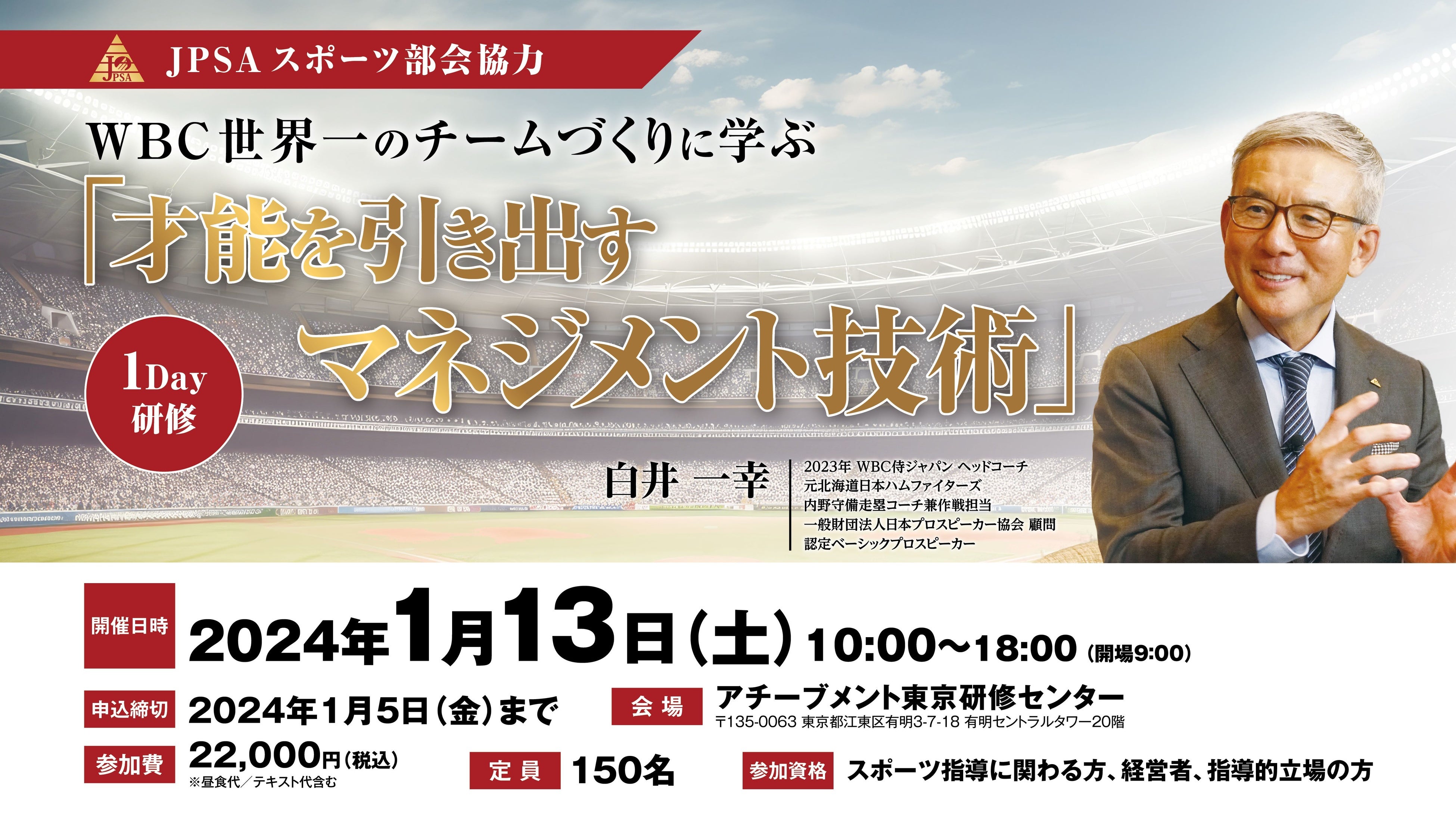 アチーブメント株式会社は、2024年1月13日にアチーブメント東京研修センターで、2023年WBC侍ジャパンのヘッドコーチを務めた白井一幸氏を講師に迎えた1日研修を開催します。