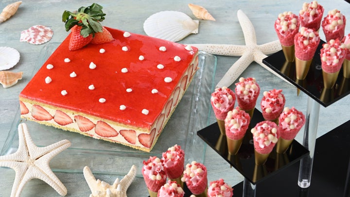 海をテーマにしたメニューで、山盛りのいちごや定番のいちごスイーツに加え、海のテーマを取り入れた遊び心溢れるスイーツも楽しめます。