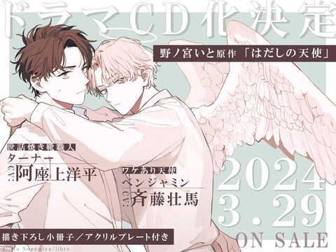 野ノ宮いと先生の初BLコミックス「はだしの天使」がドラマCD化されることが決定しました!2024年3月29日に発売されるこのドラマCDは、原作コミックス1巻の内容を完全収録し、描き下ろしエピソードも含まれています。
