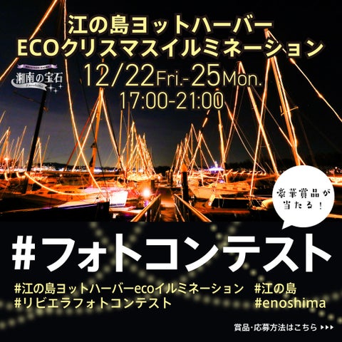 株式会社リビエラリゾートは、江の島ヨットハーバーで12月22日から25日まで「江の島ヨットハーバーECOクリスマスイルミネーション」を開催します。