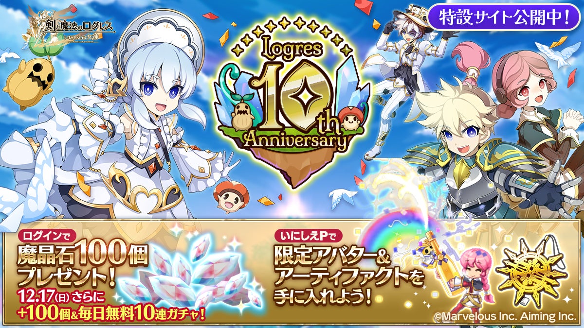 スマホ向け本格オンラインRPG『剣と魔法のログレス いにしえの女神』<10th Anniversaryは12/27(水)まで!クリスマスにぴったりな武器も販売★>