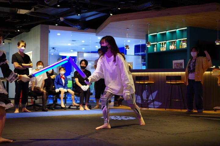 参加者はスマートフォンと特殊な刀を使って戦います。