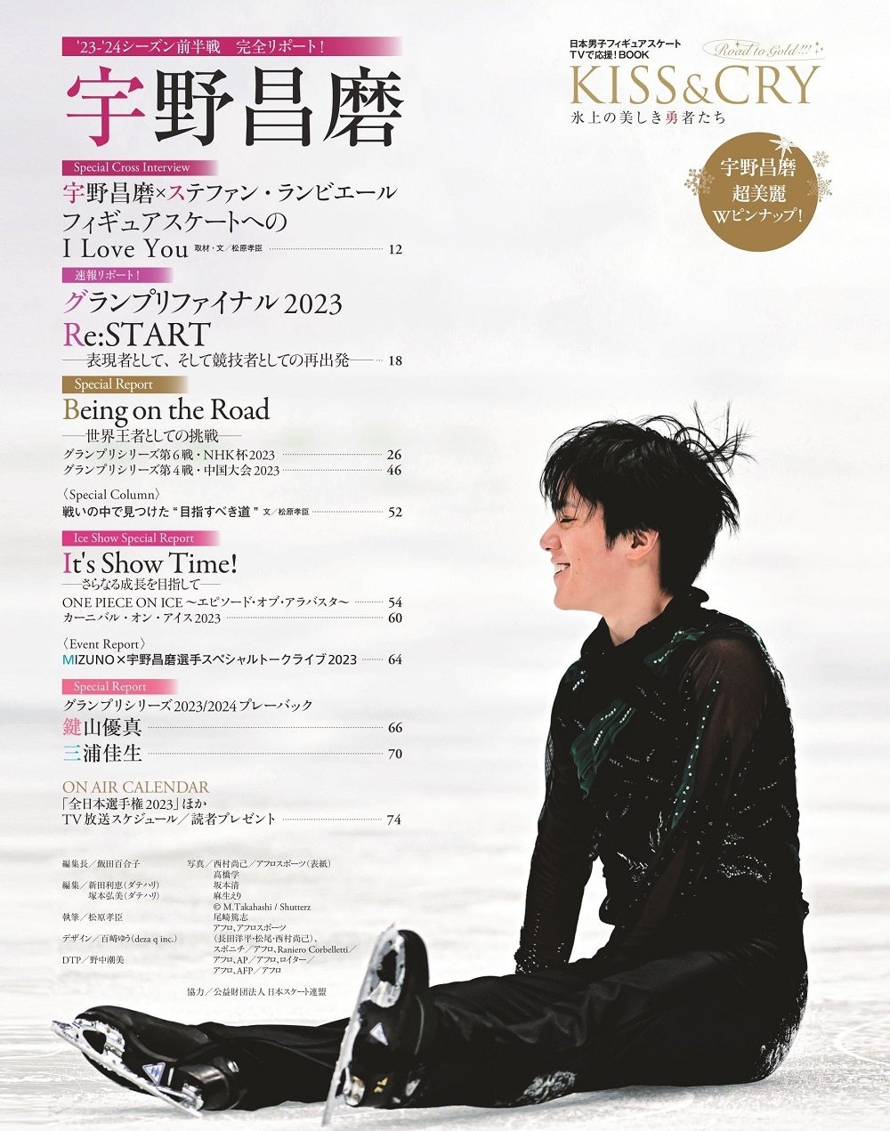 「KISS & CRY 氷上の美しき勇者たち Vol.50 2023-2024シーズン グランプリシリーズ特集号」は、宇野昌磨選手の特集です。