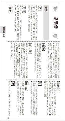 収録されている言葉は古典の世界で使われるもので、キーワード一覧や索引も掲載されています。