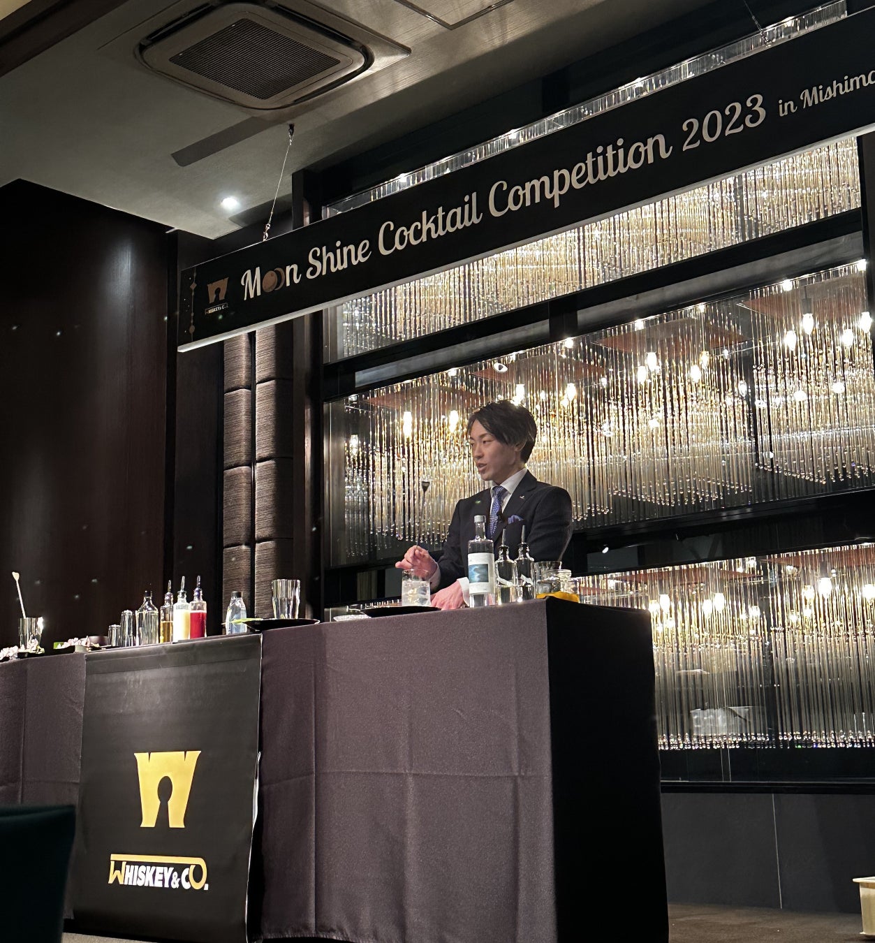 「Moon Shine Cocktail Competition 2023」のファイナリスト5名が、ジンの『Water Dragon Spirits』を使用した「水」をテーマにしたカクテルと、『Distillery Water Dragonの蒸留原酒』を使用した「月」をテーマにしたカクテルをプレゼンテーションと実演で披露し、優勝者が決まりました。