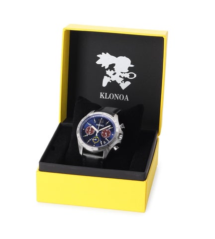 文字盤にはクロノアのシルエットや風のリングが表現され、裏ぶたにはクロノアロゴが刻印されています。