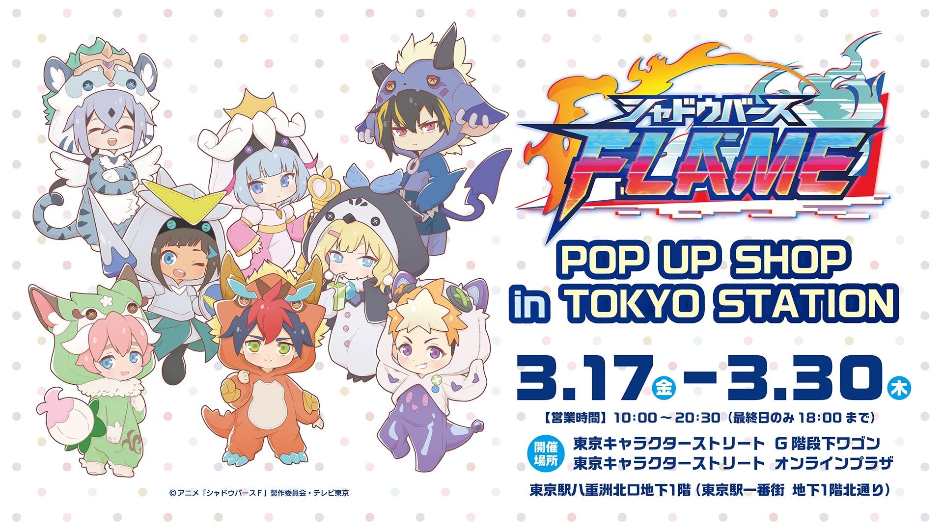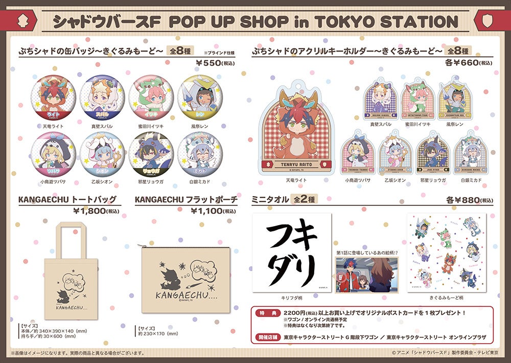 東京駅一番街 東京駅キャラクターストリート G階段下ワゴンにて、TVアニメ「シャドウバースF」のPOP UP SHOPが3月30日まで開催中!