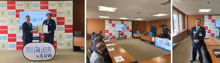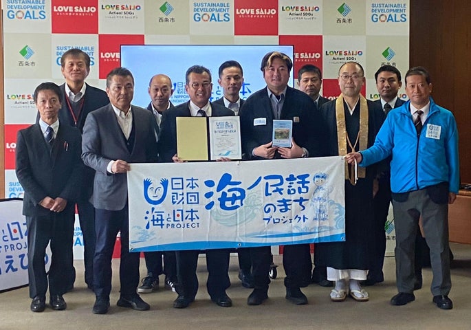 - 「海ノ民話のまちプロジェクト」の説明やアニメパッケージ贈呈