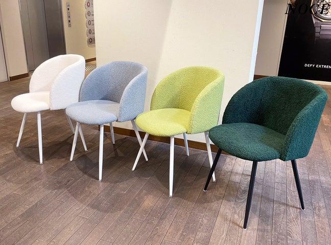 NOCEの新商品、チェアSDC009は、トレンドのモコモコとした質感がかわいいファブリックを使用しています。