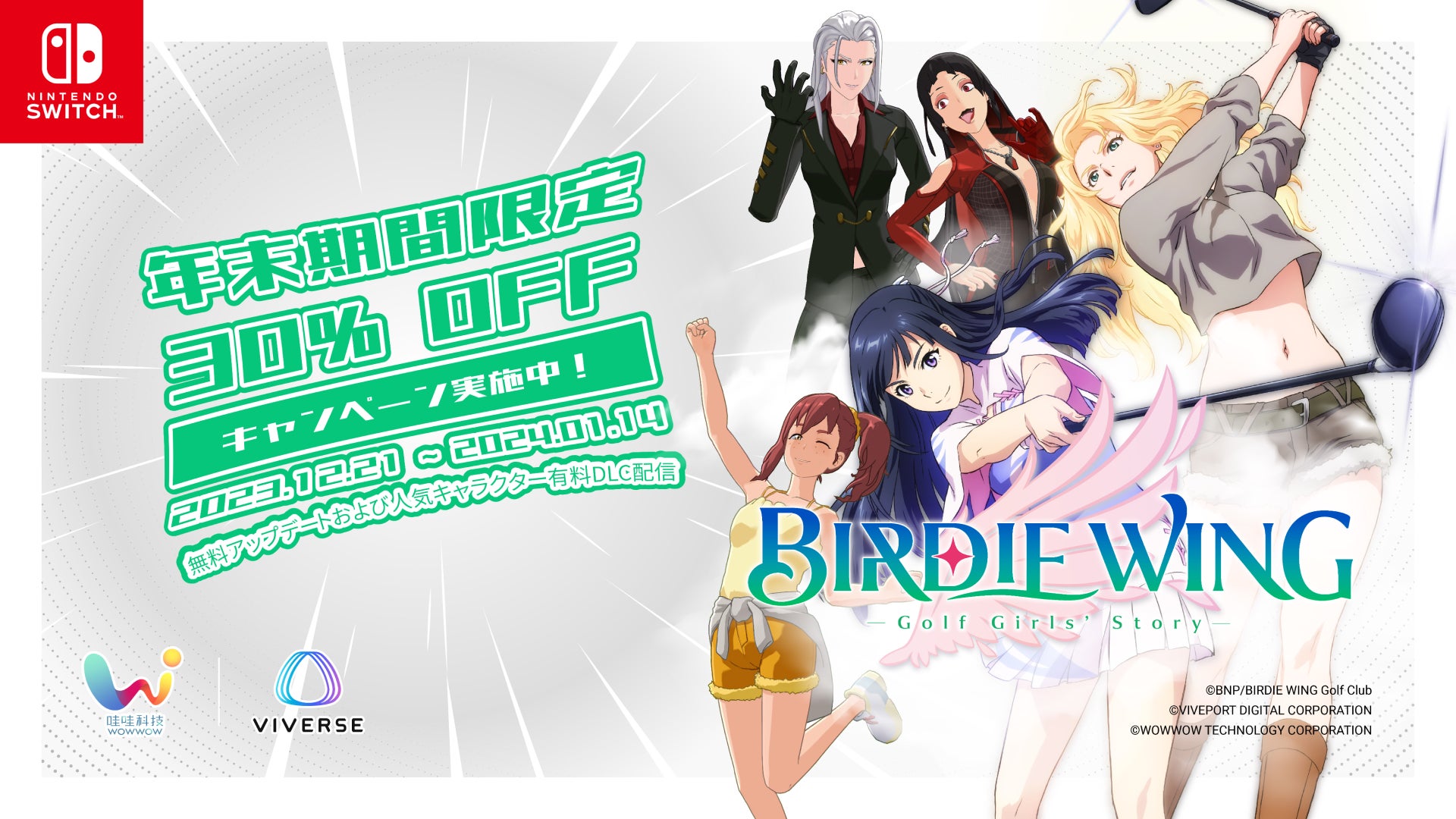 女子ゴルフをテーマにしたアニメ『BIRDIE WING』のゲーム版が、HTCのオープンメタバース VIVERSEとWOWWOW TECHNOLOGY CORP.の共同開発でNintendo Switch向けに発売されました。