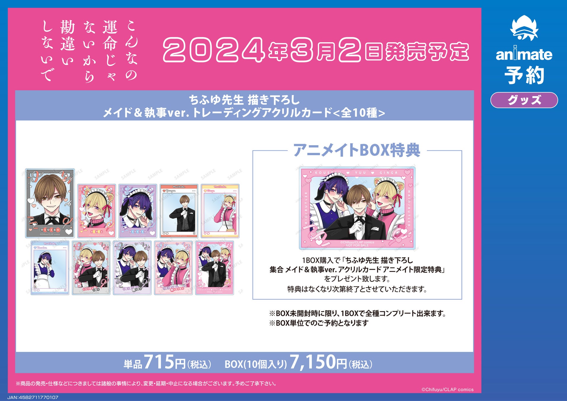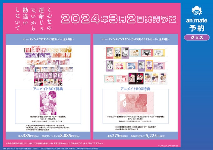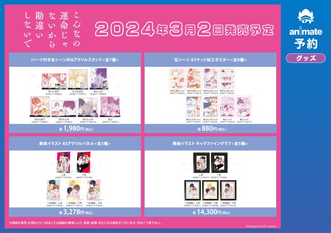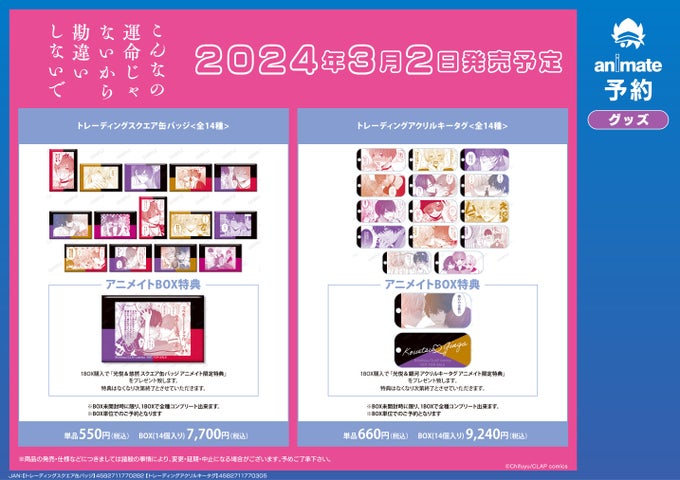株式会社アルマビアンカは、2024年3月2日から「『こんなの運命じゃないから勘違いしないで』アニメイトフェア」を開催します。