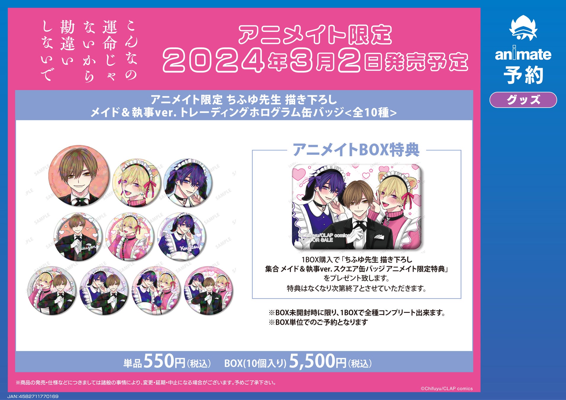 - 描き下ろしイラスト、フェア限定特典、アニメイト通販、通販事前予約キャンペーン、店舗購入キャンペーン、特設サイト