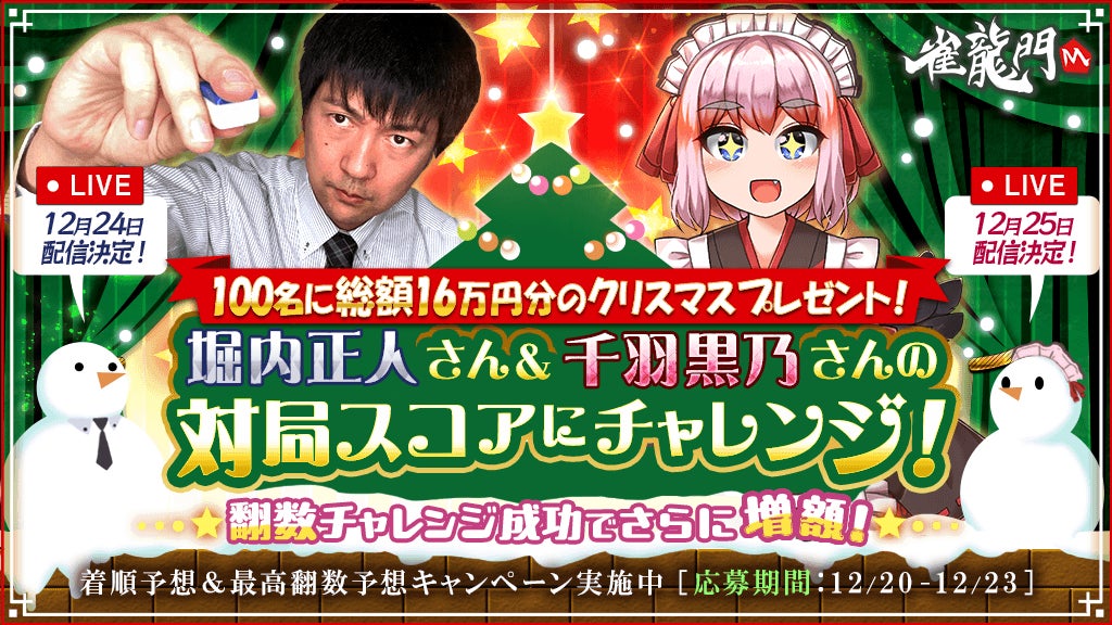 堀内さんと千羽さんはクリスマスに合わせてYouTubeで対戦動画を配信し、視聴者にはクリスマスキャンペーンが用意されています。