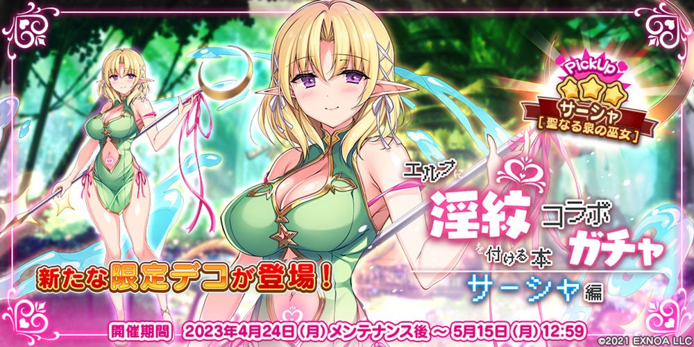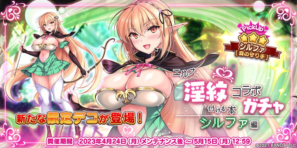 合同会社EXNOA(本社:東京都港区、CEO:村中 悠介、URL:https://games.dmm.com/)が運営するDMM GAMESにおいて、『救世少女 メシアガール おかわり』が本日4月24日(月)より、『エルフに淫紋を付ける本』コラボイベント、コラボガチャを開催いたします。