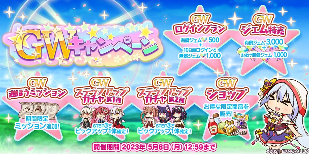 GW期間中、期間限定のミッションやガチャ、ショップなどが開催されます!