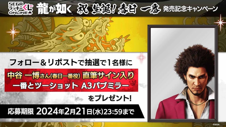 - セガ ラッキーくじオンライン「『龍が如く』 祝 生誕! 春日一番」