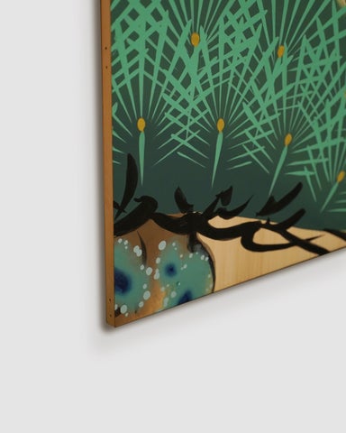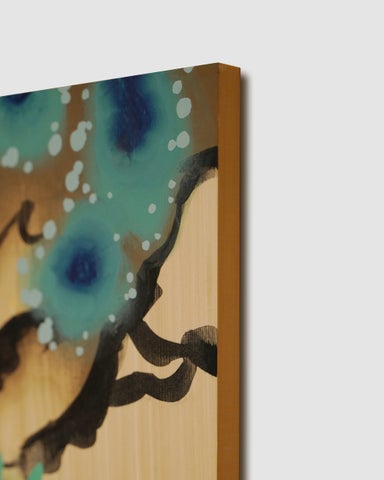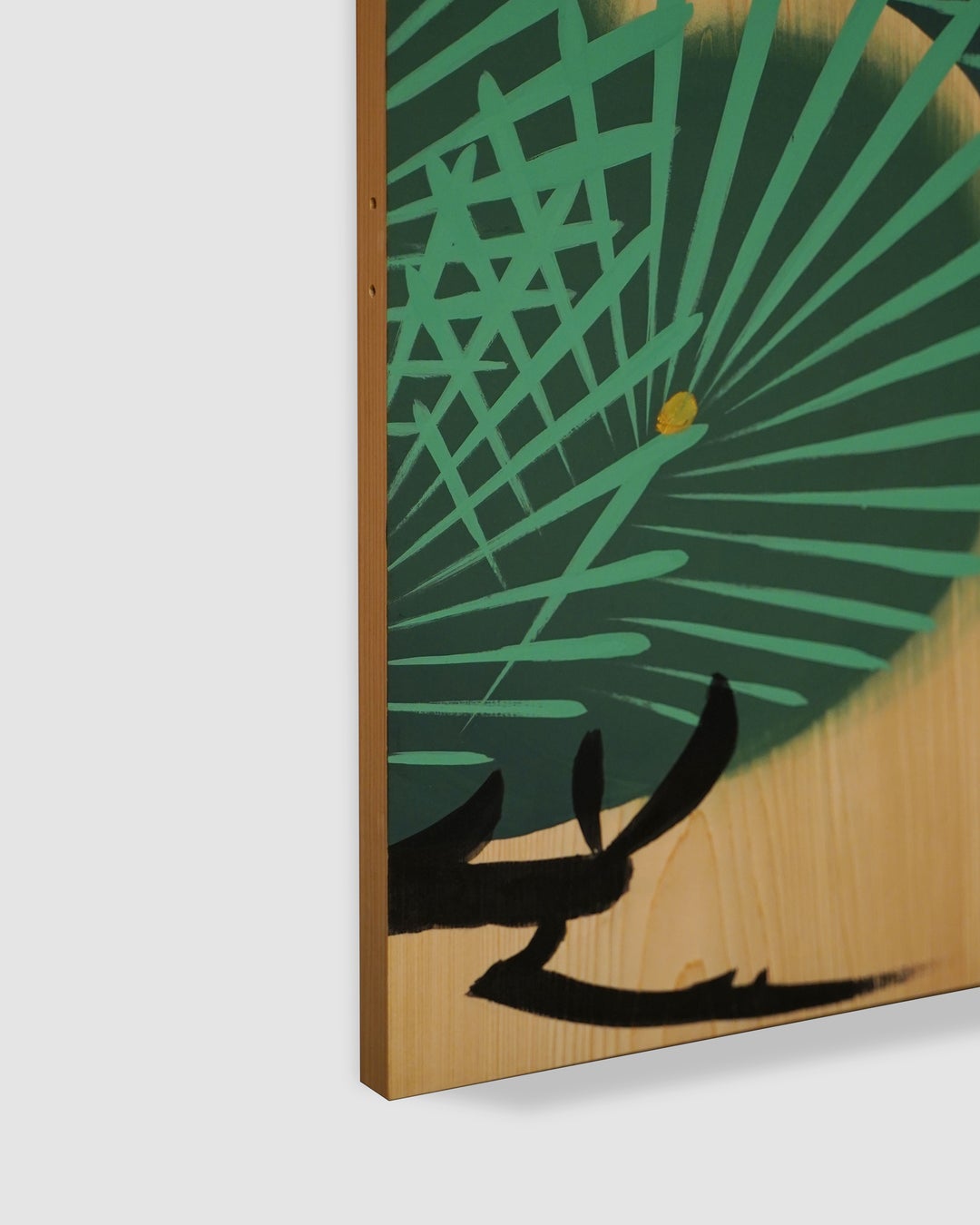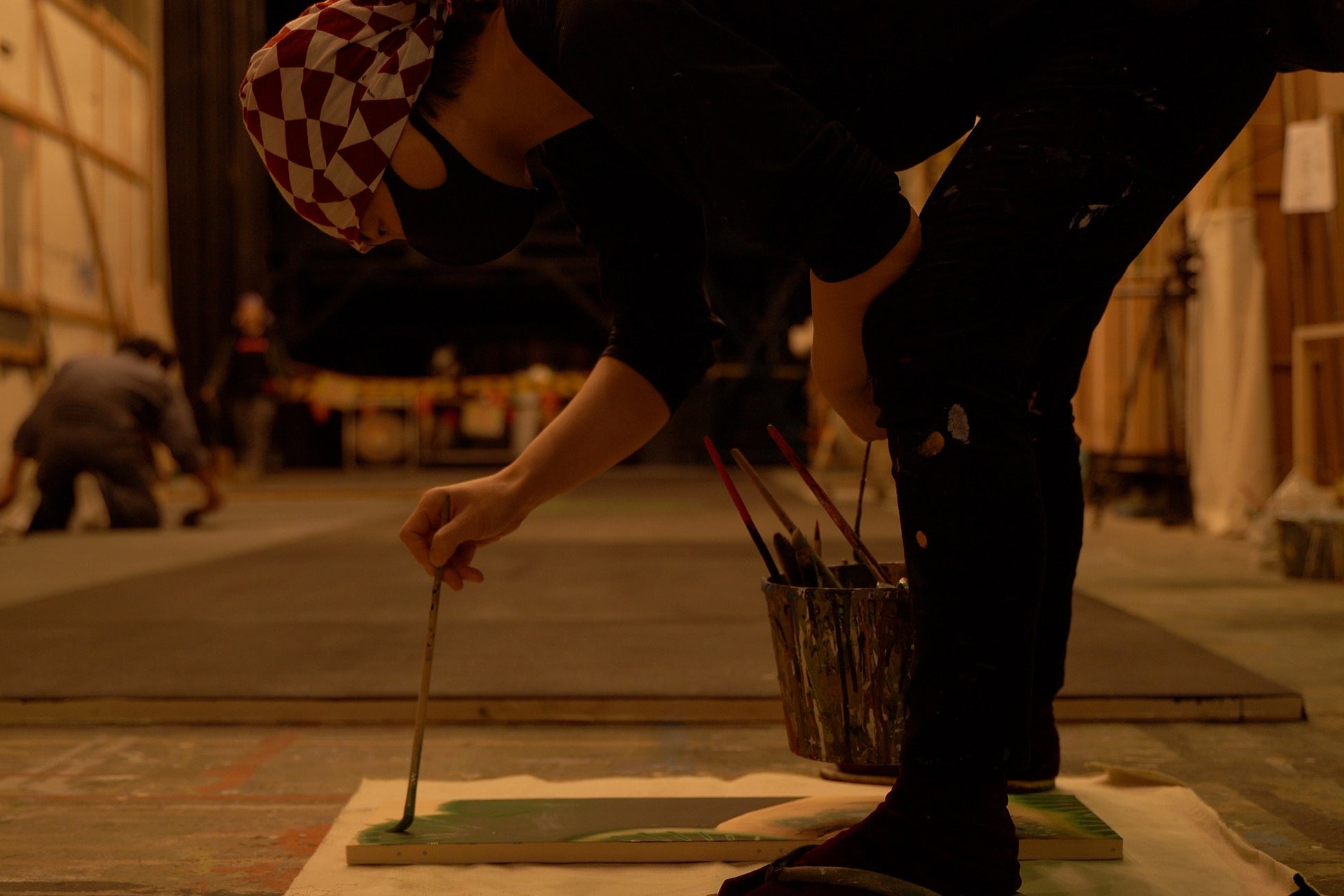 - アートピースは、檜舞台を再利用し、絵描きによって描かれる