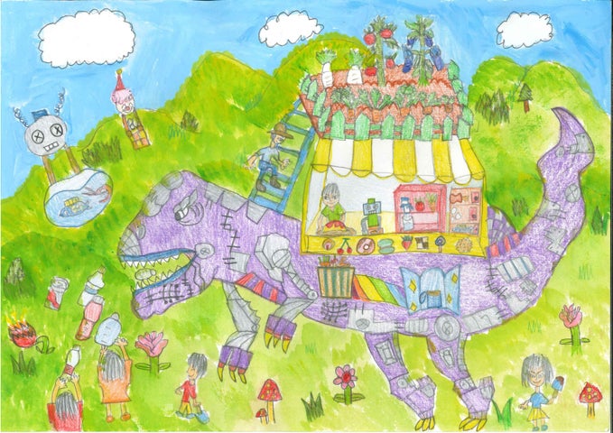 彼の作品は、ペットボトルをエネルギーに変えたり、食品ロスをなくしたりするなど、具体的なSDGsのアイデアを取り入れたもので、完成度の高いイラストも評価されました。