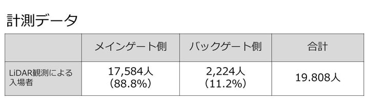 具体的には、2023年11月25日のFC東京vs北海道コンサドーレ札幌戦で、メインゲートとバックゲート付近に3D-LiDARとコントロールPCを設置し、来場人数のカウントや移動方向の計測を行いました。