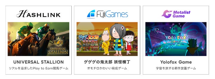 また、「GESO Verse」では、「UNIVERSAL STALLION」「ゲゲゲの鬼太郎〜妖怪横丁〜」「YOLO FOX Game」といったタイトルの提供も決定しています。
