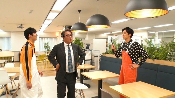 堂前と西村が社長と共にオフィスを散策し、兎ときょんは社長の様子をモニタリングします。