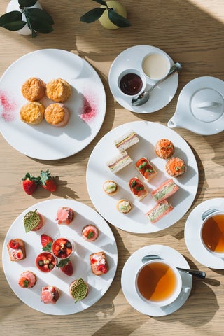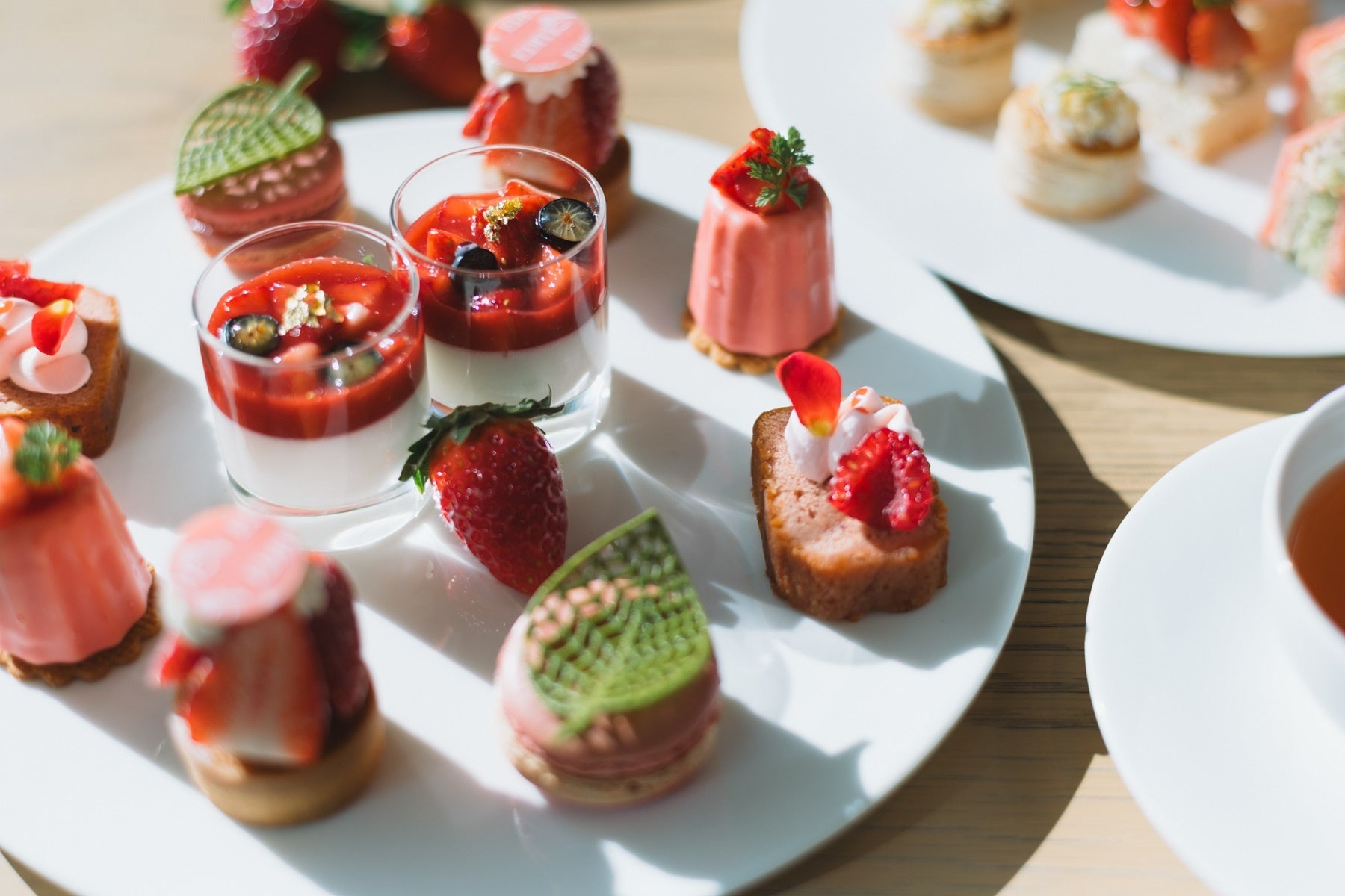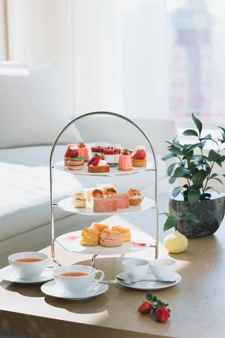 このアフタヌーンティーでは、上品な苺のスイーツと軽やかなセイボリーを楽しむことができます。